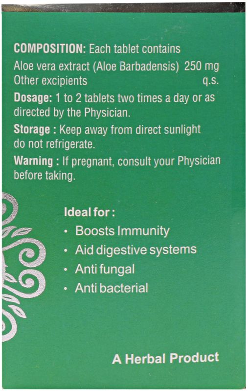 Each Tablet Contains Aloe Vera Extract (Aloe Barbadensis) 250mg. Other excipients q.s.