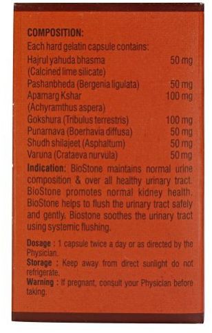 BioStone maintains normal urine composition & over all healthy urinary tract. BioStone promotes normal kidney health. BioStone helps to flush the urinary tract safely and gently. Biostone soothing the urinary tract using systemic flushing.