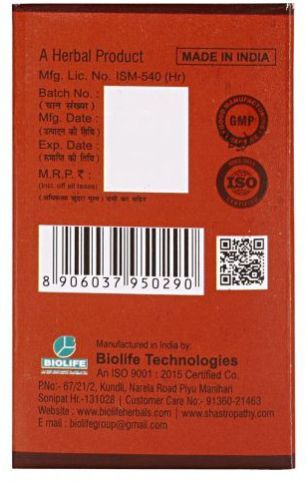 | Ingredient | Chandrasur, Kudaz, Ashwagandha, Babool, Kaunch, Puwar, Shyonaka, Chiraita, Amla, Haritki, Somlata |